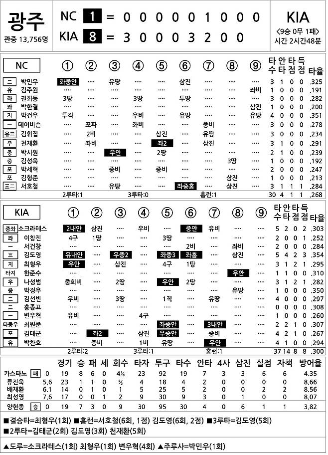 [2024 KBO리그 기록실] NC vs KIA (7월 23일)