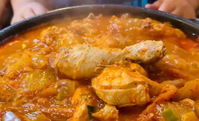 ▶ 대표 메뉴인 묵은지 닭볶음탕은 짭조름하고 얼큰한 맛에 중독성이 강하며, 묵은지 특유의 깊은 향과 육수의 진함이 잘 어우러집니다.
