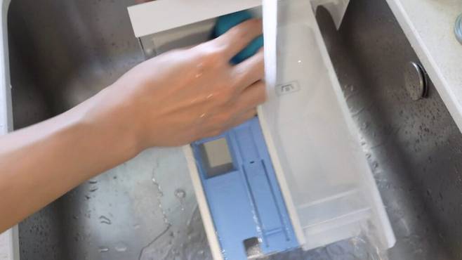 뺀 세제통은 부드러운 수세미로 꼼꼼히 닦은 후 완전히 건조시키세요. 그리고 다시 세탁기에 결합시켜 주시면 됩니다.