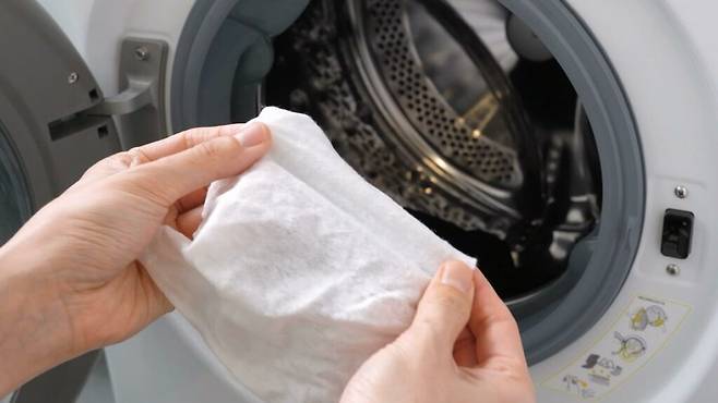 이럴 땐 세탁물과 함께 물티슈 2장을 함께 넣으면 쉽게 해결이 됩니다. 이때 주의할 점은 잘 찢어지지 않는 단단한 물티슈를 준비하셔야 해요. 그리고 향과 색깔이 없는 물티슈로 준비하세요.