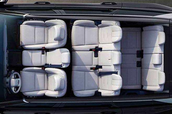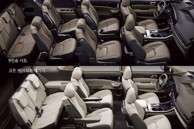 2-2-2-3의 4열 시트 구성으로 레그룸은 다소 좁을 수 있으나 각 시트의 공간은 팰리세이드에 비해 넓다.