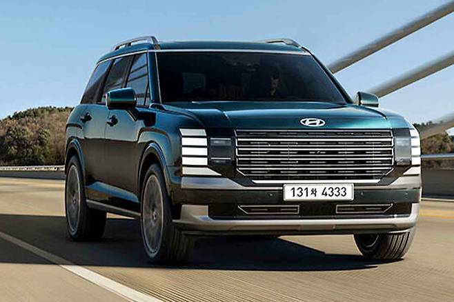 팰리세이드: 강인한 SUV 스타일, Full LED 헤드램프, 크롬 라디에이터 그릴