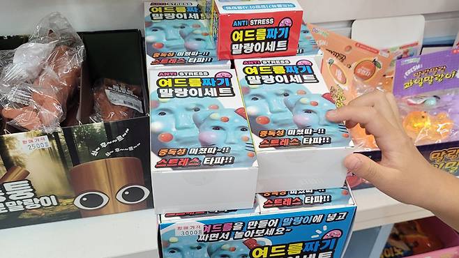 실제로 얼마나 위험하고, 어떻게 판매가 되고 있는지 한 아파트 앞 문구점을 찾아가 봤습니다. 장난감들이 모여 있는 가판대에서 '여름짜기 말랑이'가 놓여있었고, 3천 원대 가격으로 손쉽게 살 수 있습니다.
