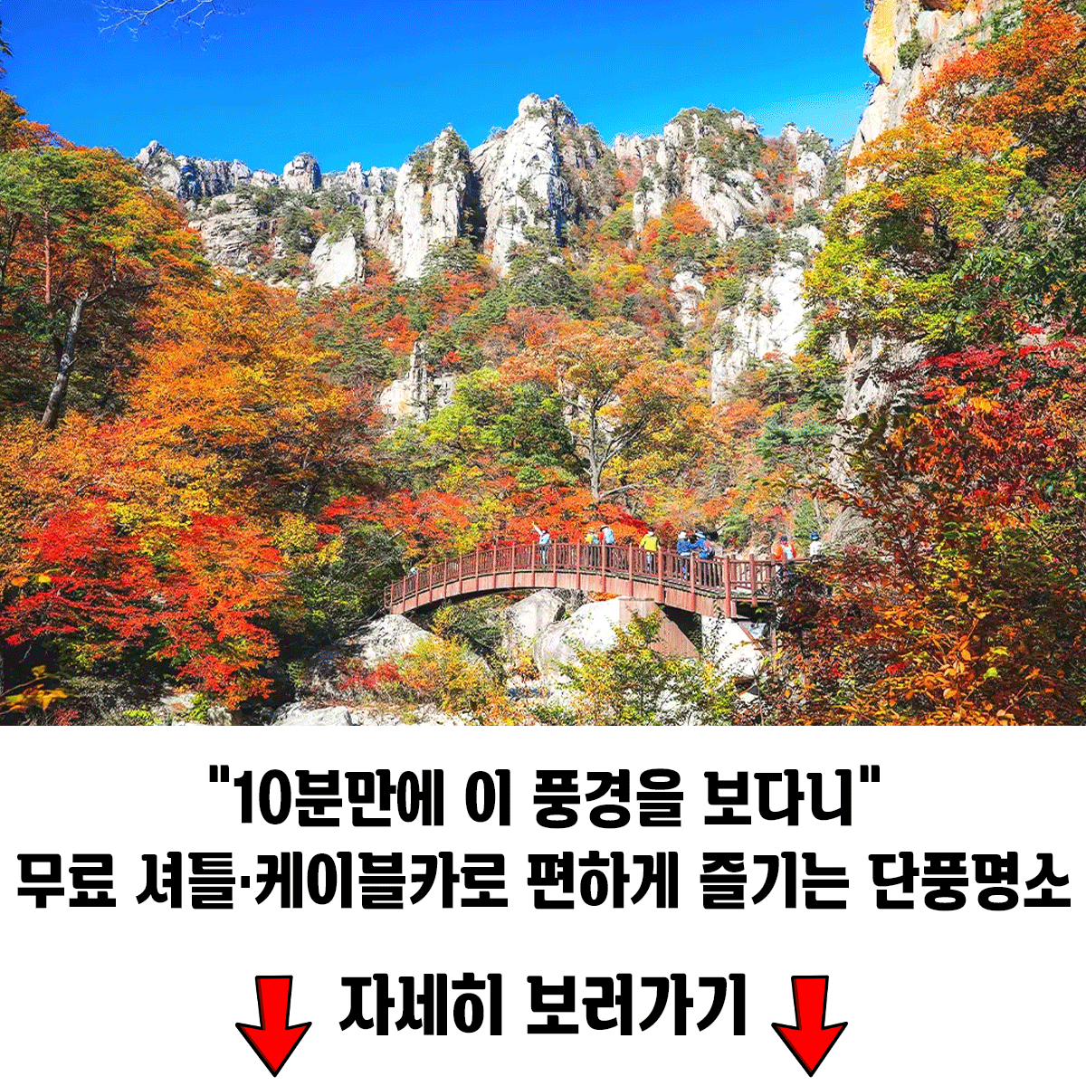 - 주차: 숲 인근 주차장 + 단풍철 임시 주차장 운영