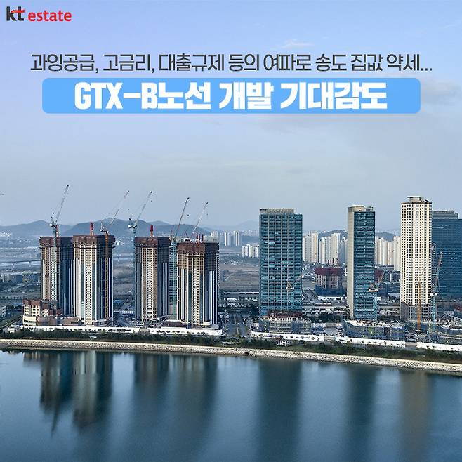 하지만, 일선에서는 GTX-B 착공이 반등할 계기로 작용할 것이란 의견도 있는데요. GTX-B 노선은 인천대입구역에서 출발해 서울 여의도, 서울역 등을 거쳐 경기도 남양주 마석까지 이어지는 노선으로, 해당 노선이 개통되면 인천대입구역에서 여의도까지 15분, 서울역까지 21분만에 도착할 수 있어 서울 출퇴근권으로 자리 잡을 전망입니다.