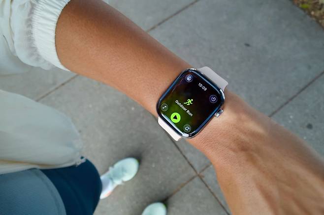 그리고 애플 인텔리전스 기반으로 구현되는 ‘워크아웃 버디’라는 새로운 기능이 공개됐습니다. 사용자의 운동 데이터와 피트니스 기록을 통합해서 운동하는 동안 심박수, 페이스, 거리, 활동 링 등의 데이터에 기반한 맞춤형 동기 부여를 제공하는 거죠. 워크아웃 버디를 활성화하고 달리기를 시작하면, 에어팟에서 친구의 목소리가 흘러나옵니다.