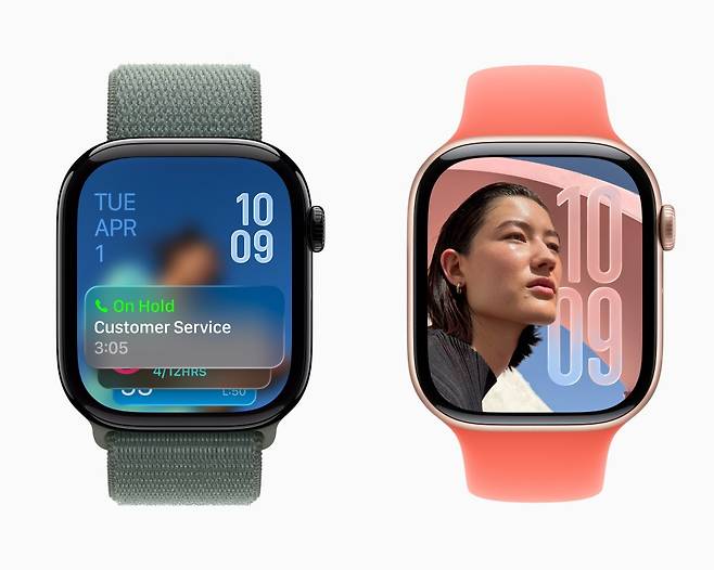 손목 돌리기 제스처가 추가 되어 한 손으로 손목을 빠르게 뒤집었다가 원래대로 돌리면 알림을 닫을 수도 있습니다. 걸려온 전화를 거절하거나, 타이머와 알람을 끄고 시계 페이스로 다시 돌아가는 동작도 지원합니다. 기존에 있었던 두 번 탭 제스처와 함께 사용하면 다른 한 손을 사용할 수 없을 때도 애플 워치에서 다양한 동작을 쉽게 실행할 수 있겠죠.