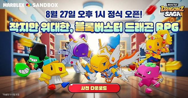 8월 27일 오후 1시에 정식 출시를 앞둔 '메타 토이 드래곤즈 사가'가 27일 10시에 사전 다운로드를 시작한다.