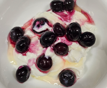 - 설명: 플레인 저지방 그릭 요거트에 블루베리, 딸기, 라즈베리 등을 곁들여 먹는 간식입니다.