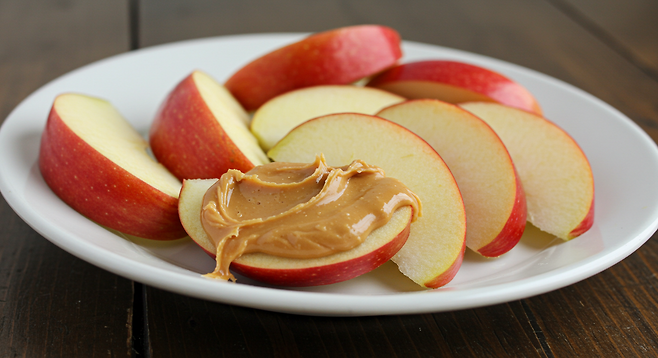 - 설명: 사과를 얇게 슬라이스한 뒤 무가당 땅콩버터를 얇게 발라 먹는 간식입니다.