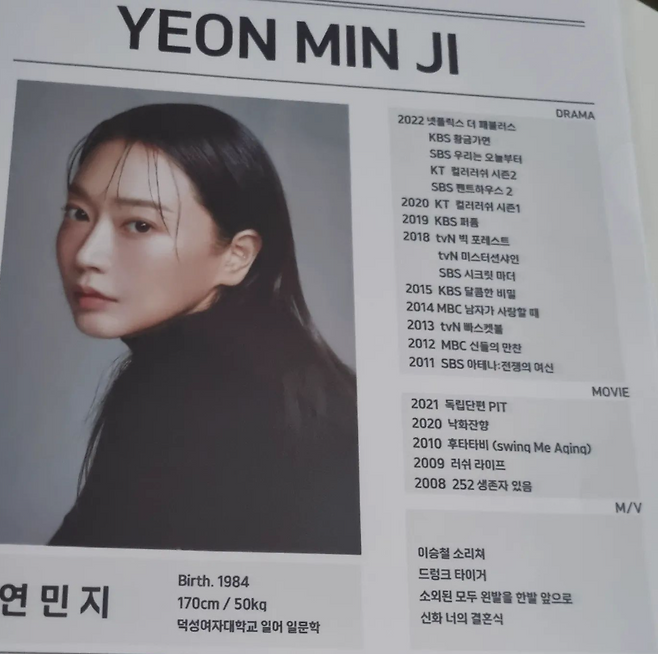 연민지는 ‘달콤한 비밀’, ‘시크릿 마더’, ‘미스터 션샤인’, ‘퍼퓸’, ‘우리는 오늘부터’에서 열연을 펼쳤습니다.