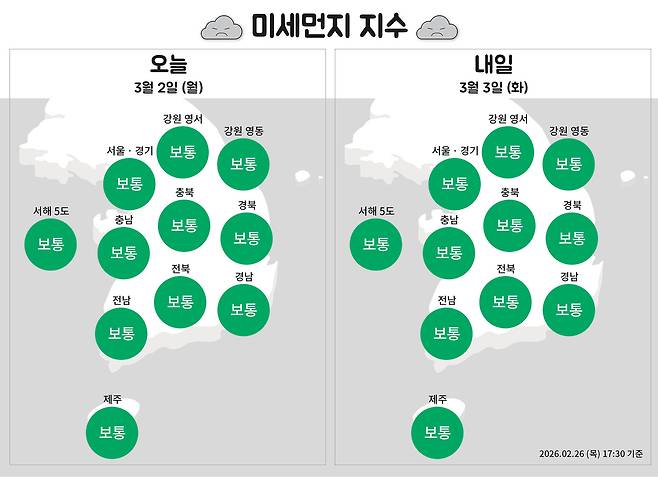 수요일은 전국 대부분 지역이