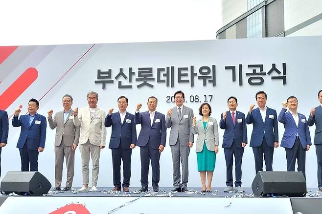 실제로 부산롯데타워는 지난 2000년 열린 첫 번째 기공식을 시작으로, 2009년 두 번째 기공식을 거쳤다. 이는 당초 부산롯데타워 건축 허가는 부속건물로 롯데백화점(광복점)과 엔터테인먼트동을 만드는 ‘종합 세트’였던 계획과 실제 사업 진행이 달라진 것이다.