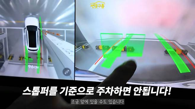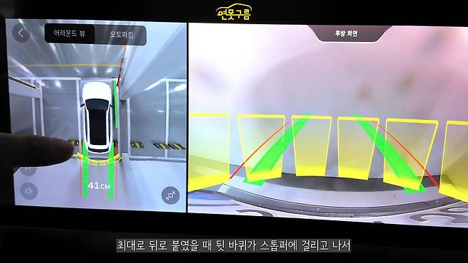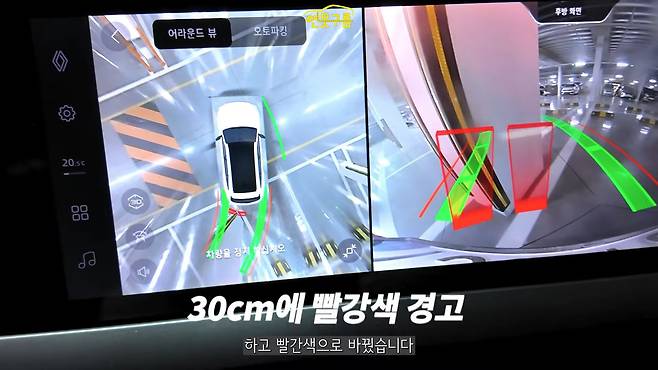 또한 그랑 콜레오스는 주행 중 80cm 이내로 접근하면 노란색 경고 알람이, 30cm 이내로 접근하면 빨간색 알람으로 운전자에게 정차를 유도하는 등 차량 외부와 내부에서의 거리 인식 차이를 해소했다.