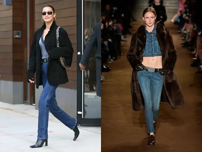 아홉 명의 ‘소녀’가 입어 ‘시대’를 강타한 형형색색의 그 바지. 너무 꽉 껴서 푸짐한 식사도 힘들고 집에 돌아오면 다리에 문신처럼 바지 선이 새겨지던 그 바지. 사실 나는 그들처럼 마른 몸매도 아닌 데다가 불편하기 짝이 없는 스키니진을 싫어한다. 게다가 와이드한 팬츠를 즐겨 입다 보니 몸에 딱 붙는 실루엣은 이젠 어색하게 느껴지기도 하고. 이런 내 마음을 아는지 모르는지 패션 선구자 벨라 하디드는 자꾸만 스키니진을 입고 등장한다. 여기에 2024 F/W에서 스키니진을 선보인 미우미우까지. 아무래도 올해부터는 다시 스키니진을 거부할 수 없을지도 모른다.