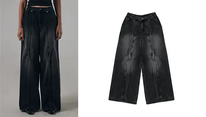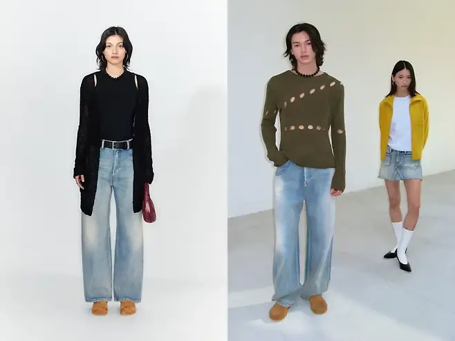 그중에서도 나의 위시리스트 중 하나인 ‘twisted wide denim set-up pants’를 추천한다. 바지 앞뒤로 기다란 로프 디테일이 꼬여있다. 바지 통이 꽤 넓고 밑단으로 갈수록 퍼지는 핏이지만 로프 디테일이 더해져 크게 부해 보이지 않는다. 절개 라인에 트위스트가 실제 무릎보다 살짝 위에 있어 다리가 더 길어 보이는 착시효과까지. 여기서 끝이 아니다. 자연스러운 워싱과 허리와 엉덩이 쪽 금속 디테일로 ‘힙’ 한 스푼 추가. 셋업 재킷도 있어 코디가 어려운 이들에게도 안성맞춤이다. 구매는 여기(https://tinyurl.com/9u9yfcfy).