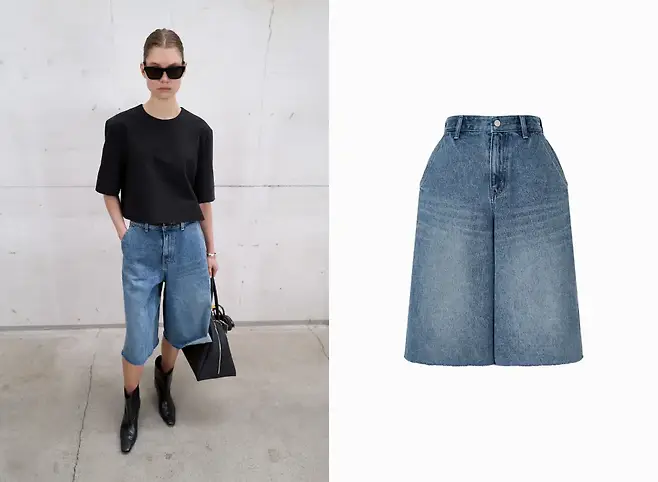오르의 시그니처 데님 중 하나인 ‘마르 데님 니 팬츠’라면 무더위를 이겨낼 수 있겠다. 이번 시즌에는 마이크로 기장의 하의들이 아무리 유행이라지만 현실적으로는 속 보일까 마음 졸이지 않아도 되는 무릎을 살짝 덮는 기장의 니 팬츠가 끌린다. 애매한 기장이라 구매하기 망설여질 수도 있겠지만 생각보다 부담스럽지 않고 오히려 다리라인을 예쁘게 보여준다. 가위로 대충 자른 듯한 가벼운 밑단은 시크함을 더해준다. 구매는 여기.(https://tinyurl.com/ystpa3rj)