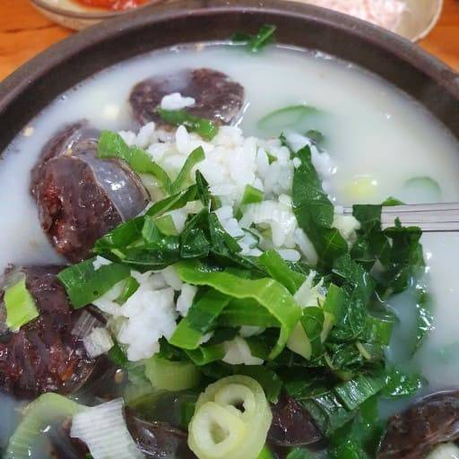 충남식당의 국밥은 토렴 식으로 제공되며, 이미 적당히 간이 되어 있어 별도의 양념 없이도 맛있게 즐길 수 있습니다. 내장은 비린내 없이 신선하고 쫄깃하며, 순대 역시 푸짐하게 들어가 있어 식사의 만족도를 높여줍니다.