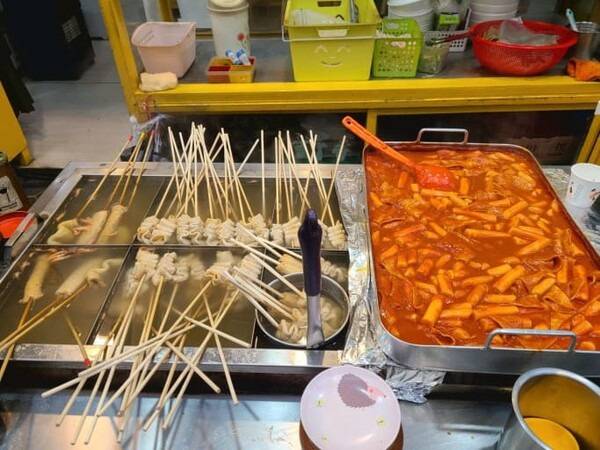고현시장의 마지막 추천 맛집은 바로 시장분식입니다. 이곳의 대표 메뉴는 계란에 돌돌 말린 독특한 모양의 김밥입니다.