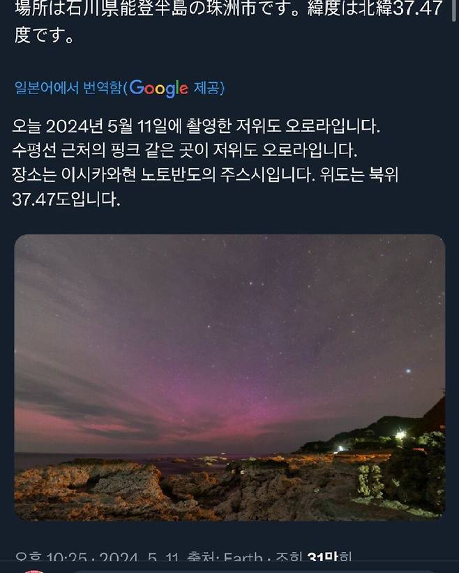 한국도 강원도같은곳은 날씨만 좋았다면 보였을지도