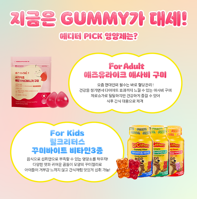 오늘은 젤리영양제 중에서 뛰어난 성분과 효능으로 요즘 가장 인기 있는 2가지 제품을 소개할게!