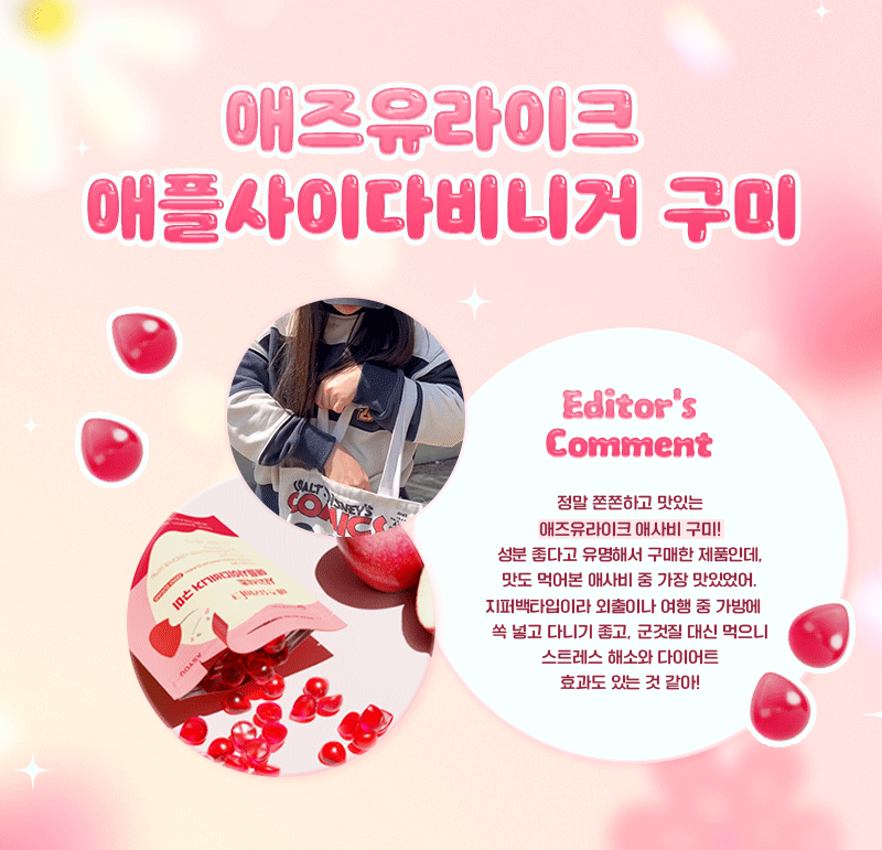 헝가리산 유기농 애플사이다비니거로 만들어진 애즈유라이크의 애사비구미에는
