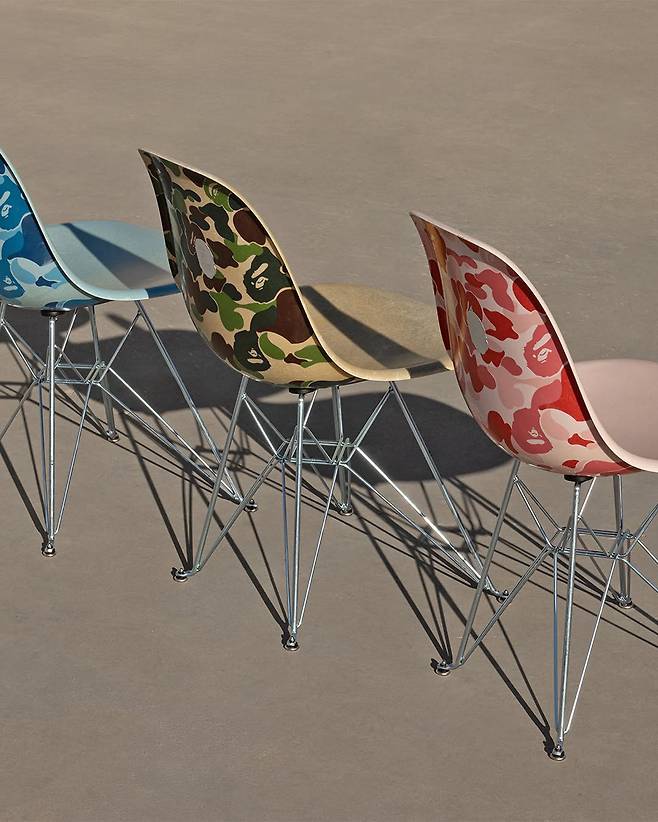 일본 스트리트 브랜드 베이프와 미국의 미드 센추리 감성의 가구 브랜드 모더니카가 만나 새롭게 선보이는 체어와 테이블로 집 안에 활기를 더해보면 어떨까.
