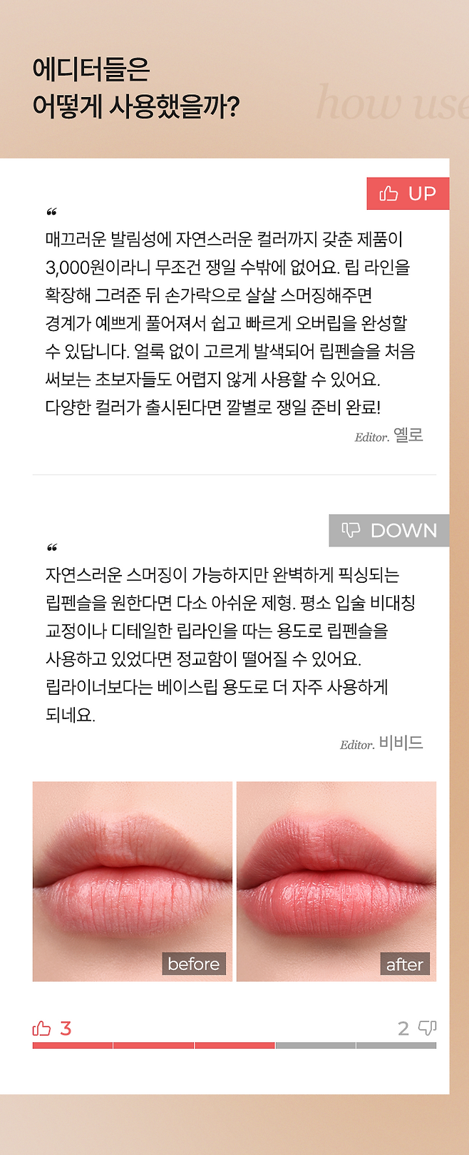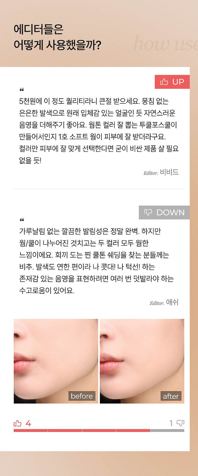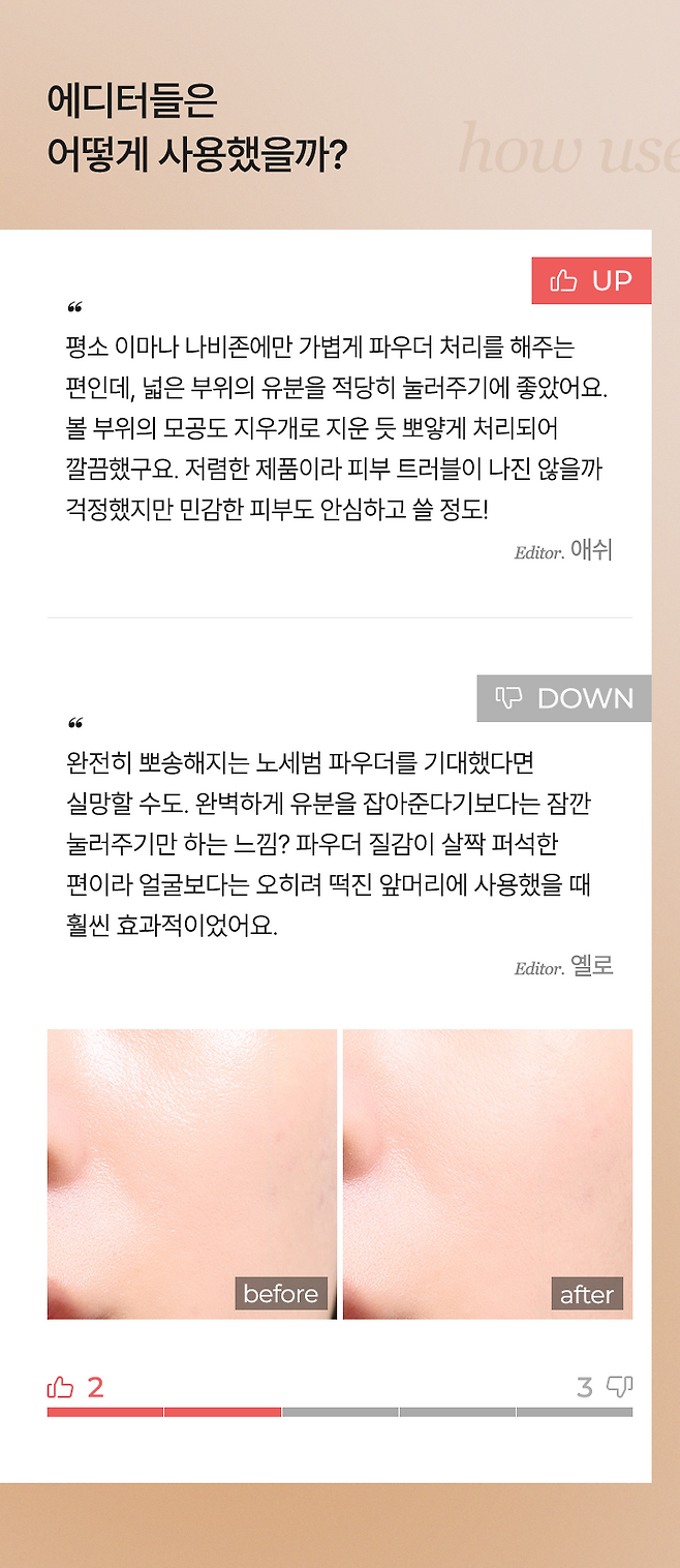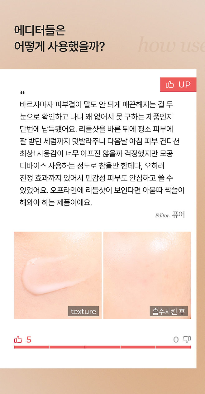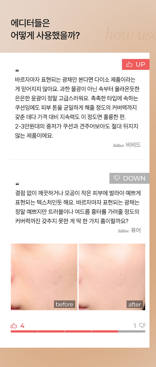 에디터 5인의 내돈내산 UP & DOWN 후기를 확인해 보세요!