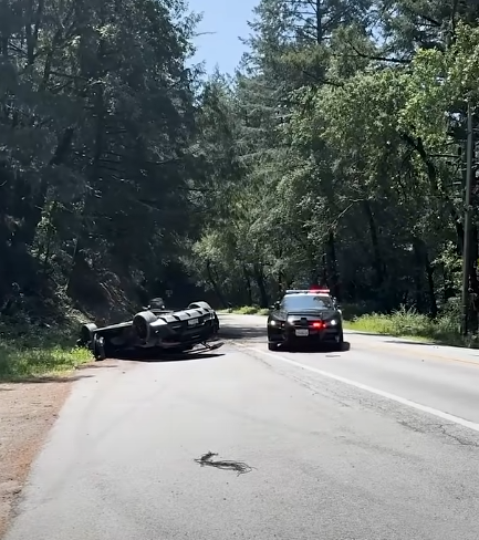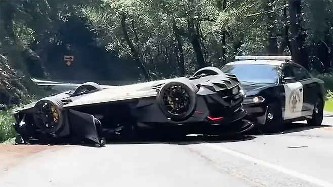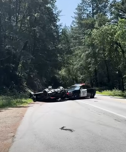 전복된 슈퍼카, 캘리포니아 산길을 점거하다