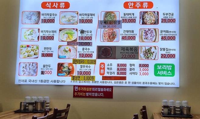 이래저래 불안한 마음으로 차림표를 바라보기는 손님이나 주인이나 매한가지다.
