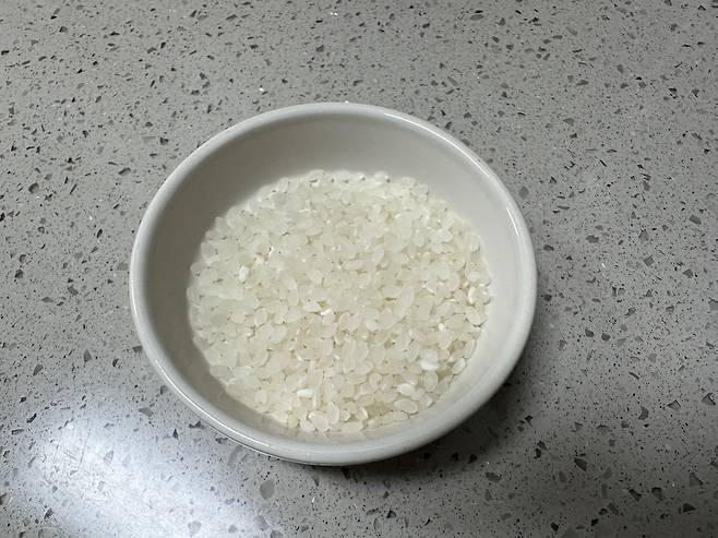 이제 기름병 침전물을 세척하기 위해 생쌀 3스푼을 준비해 주세요.