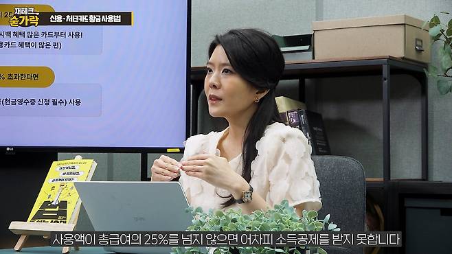 체크카드·현금영수증 공제율이 높으니 신용카드는 쓰지 않는 것이 좋을까? 그건 아니다. 김 교사는 총급여의 25%까지는 신용카드를 쓰고 그 다음부터는 체크카드를 쓰라고 조언했다. 그는 “어차피 총급여 25% 미만이면 공제가 안 되기 때문에, 25%까지는 할인이나 포인트 등 혜택이 많은 신용카드를 쓰는 게 좋다”고 했다. 이어 “총급여의 25%가 넘어가는 금액부터 체크카드를 쓰면 좋다”고 했다. 다만 김 교사는 " 억지로 총급여의 25%를 넘기 위해 노력할 필요는 없다”며 “세금을 환급받는 것보다 소비를 절약하는 것이 더 낫다”고 했다.