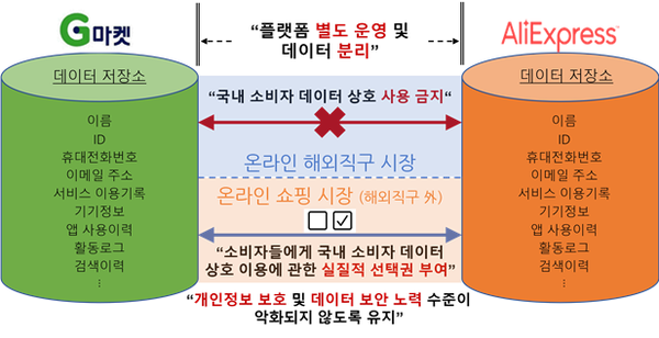 공정위는 기업결합 심사 과정에서 JV가 시장지배력을 강화할 경우 기업이 개인정보보호와 데이터 보안 품질을 유지할 동기가 저하될 수 있다고 판단했다. 이에 따라 △G마켓과 알리익스프레스를 독립적으로 운영하고 △양사 간 국내 소비자 데이터를 기술적으로 분리하도록 하는 내용의 시정명령을 부과했다.