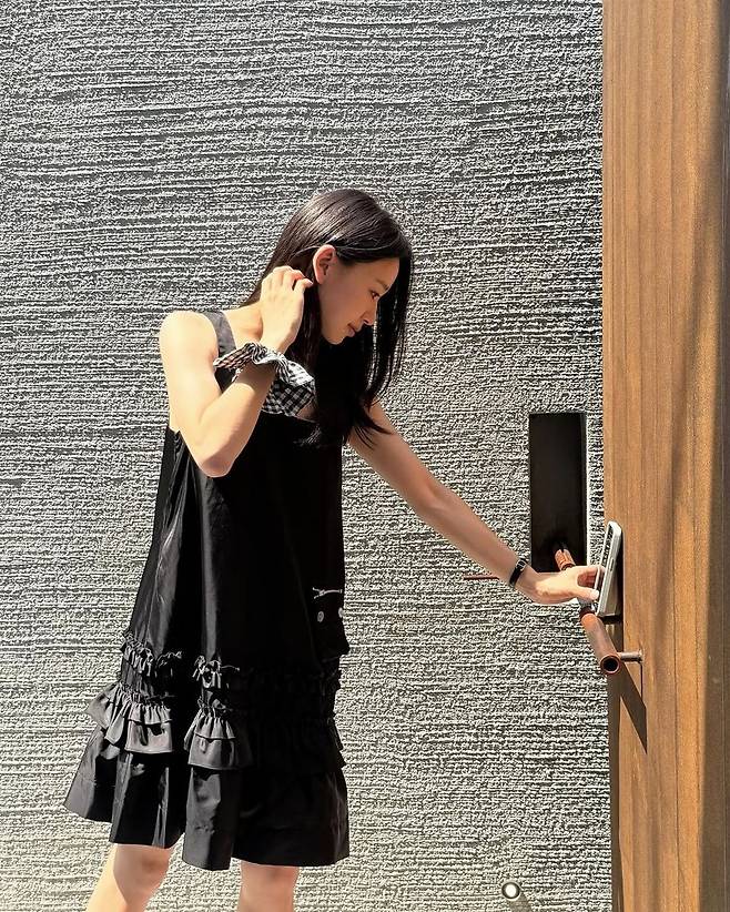 꾸안꾸 무드의 블랙 원피스는 여름철 가벼운 외출이나 여행에서도 손쉽게 활용할 수 있는 아이템이다. 손연재처럼 시크한 올블랙 스타일에 체크 액세서리로 포인트를 주거나, 커다란 토트백으로 실용성을 더하는 코디법을 참고해보자.
