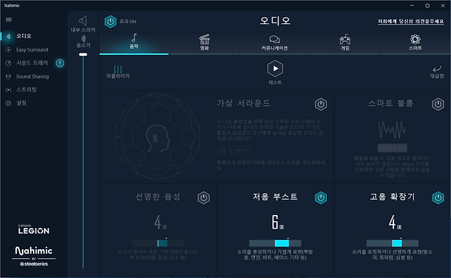 다행히, Steelseries의 나히믹 오디오(Nahimic Audio) 음장 효과 기능을 제공하는데 해당 기능을 활성화할 경우 그나마 들을만한 수준으로 올라오니, 마이크로소프트에서 해당 소프트웨어를 반드시 다운로드 받으세요.