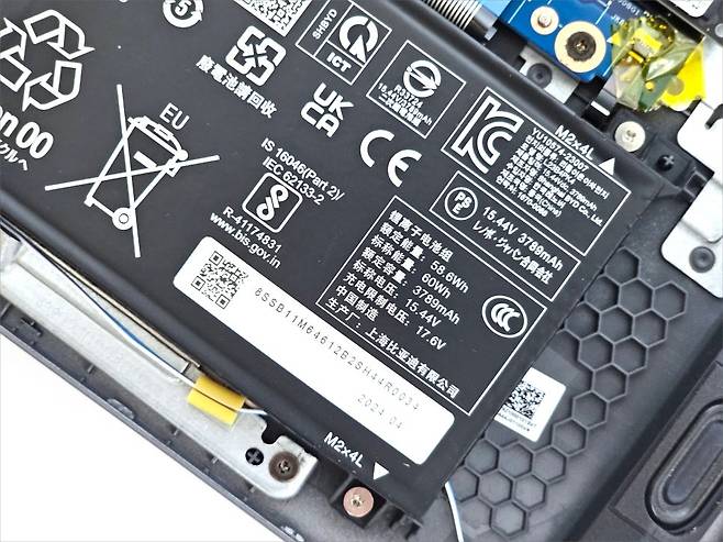 무선 랜은 블루투스 5.2, WI-FI 6를 지원하는 미디어텍 MT7921 제품이 장착되어 있으며, 배터리는 15.44V 3789mAh, 58.6Wh의 용량이 제품이 장착되어 있습니다.