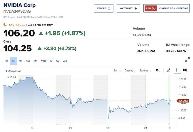 AI(인공지능) 랠리 대장주인 엔비디아가 3.78% 올랐고, 매그니피센트 7 가운데 2분기 실적이 뛰어나다는 평을 얻은 메타플랫폼이 3.86% 상승했다. 투심에 가장 도움이 된 것은 일본 증시의 반등이었다. 니케이 225 지수는 2008년 금융위기 당시 이후 가장 큰 반등세인 10.2% 급등 결과를 냈다.