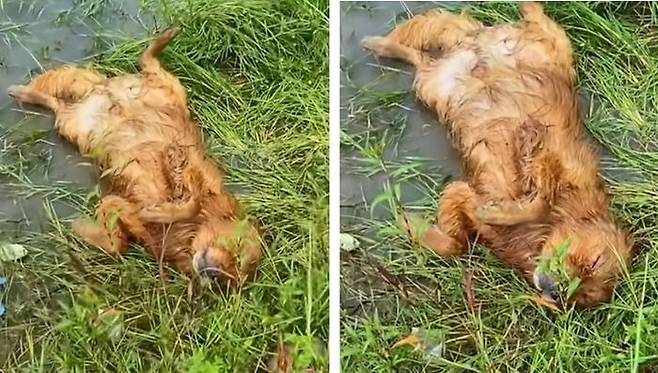편안하게 누워있는지 도통 이해가 되지 않는 댕댕이입니다 ㅎ