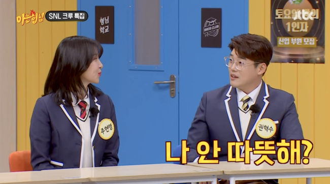 이때 이수지는 "혁수는 평소 살가운 성격인데 주현영에게만 유독 차갑게 군다"고 의심, 원성을 들은 권혁수는 주현영에게 "나 안 따뜻해?"라고 물었다.