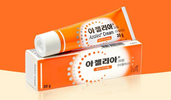 아젤리아 크림은 덴마크계 피부과 전문 제약회사인 레오파마에서 출시한 여드름 치료제다. 본 제품은 여드름의 염증 및 병변에 효과적인 도움을 줄 수 있다. 주성분인 아젤라산은 여드름균의 증식을 억제하며 각질을 제거하는 성분이다. 과다하게 각질이 형성되는 것을 정상화하고, 여드름균에 대한 항균 작용을 할 수 있다. 이 성분은 또한 면포 용해 효과가 있어, 멜라닌 색소 생성에 관여하는 효소를 억제해 염증 후의 색소 침착을 줄일 수 있다.