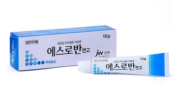 에스로반은 후시딘과 같은 종류의 항생제 연고다. 피부에 상처가 있는 부위에 발라서 세균이 침입하는 것을 막을 수 있다. 이 연고는 항생제인 무피로신을 성분으로 하기에, 상처뿐 아니라 모낭염, 여드름에 사용하는 이들이 많다. 에스로반 연고 1g에는 무피로신 20㎎이 들어 있다. 무피로신은 모낭염, 감염성 습진, 화상으로 인한 세균성 감염에 주로 사용하는데, 단백질 합성을 막아서 살균하는 원리의 성분이다.