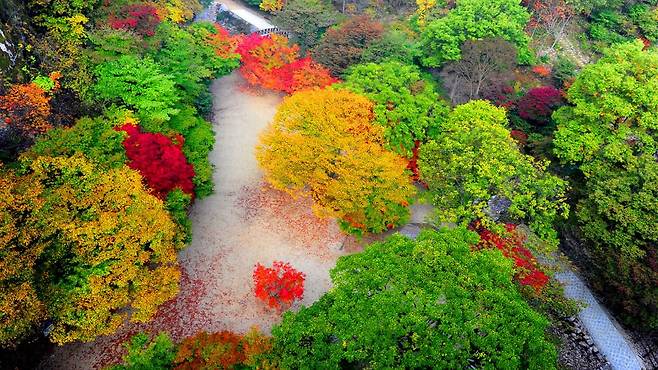팔덕면 청계리 산263-1에 위치한 이곳은 10월 말부터 11월 말까지 단풍 절정을 맞아 무려 17만 명에 달하는 관광객을 끌어모으며 전국적인 화제를 모았다. 🍁