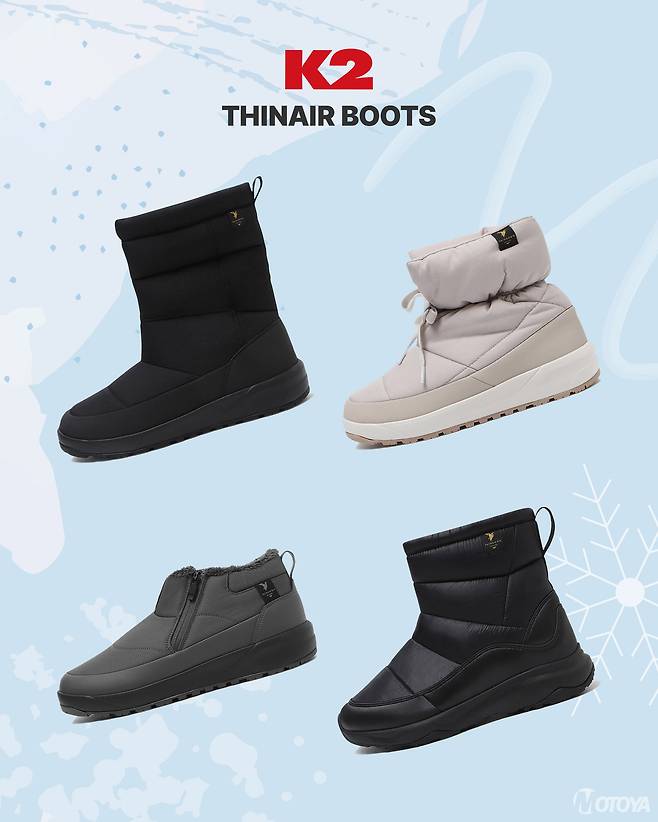 K2 신발용품기획팀 신동준 이사는 "씬에어 부츠는 K2의 혁신적인 다운 압축 패브릭인 씬다운을 적용해 뛰어난 보온성과 스타일을 갖춘 제품"이라며 "겨울철 아웃도어 활동은 물론, 일상생활에서도 편안하고 안전하게 착용할 수 있을 것"이라고 말했다.
