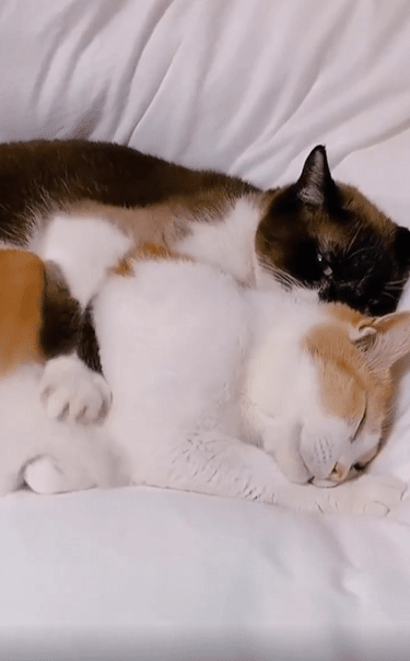 포개진 몸 위로 앞발 꾹꾹—서로를 껴안고 잠든 고양이들의 사랑스러운 교감