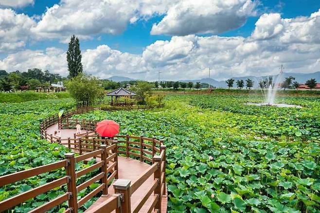 이곳은 본래 1970년대부터 연꽃을 재배해온 연꽃 자생지로, 여름이 되면 백련, 홍련, 수련이 물가를 가득 메우며 장관을 이룹니다. 2만5천㎡ 이상의 넓은 연지에는 정자와 데크길, 미루나무와 분수가 어우러져 한 폭의 수채화 같은 풍경을 자아냅니다.