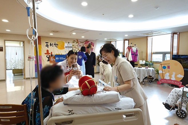 다른 병동에 있다가 자원해 이곳으로 왔는데 나도 처음에는 우울하고 무거운 분위기일 것 같아 걱정했습니다. 그런데 첫 출근 날, 봉사자와 환자가 트로트를 부르고 있더라고요. 그 모습을 보며 죽음보다는 남아 있는 삶에 초점을 맞춰서 환자들이 오늘 하루를 의미 있고 행복하게 지낼 수 있도록 도와주는 게 진정한 호스피스라는 생각이 들었습니다.