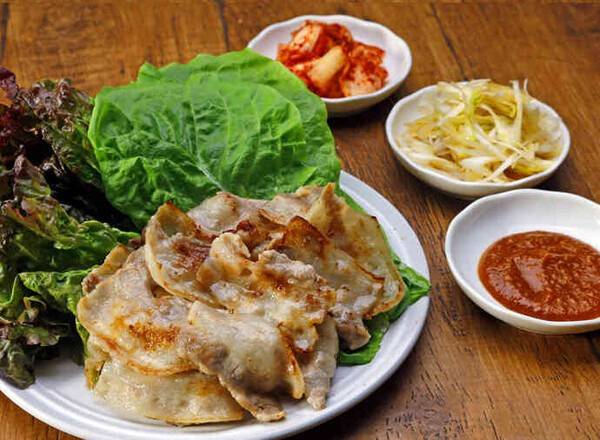삼겹살을 쌈 채소나 부추무침, 상추, 깻잎과 함께 먹으면 기름진 맛이 훨씬 덜어집니다. 이때 마늘과 양파를 한입 크기로 잘라 곁들여보세요.