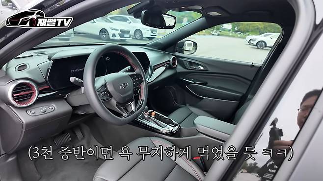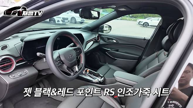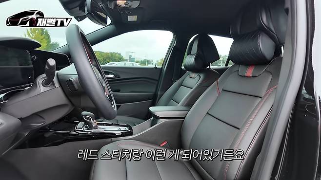 내부 디자인을 살펴보면, 문을 열었을 때 일부 영역이 블랙이 아닌 점은 다소 '옥에 티'처럼 느껴졌습니다. RS 등급임에도 불구하고 실내 색깔을 따로 고를 수는 없지만, 고성능 느낌을 주는 레드 스티치가 곳곳에 적용되어 스포티한 분위기를 연출하고 있습니다.
