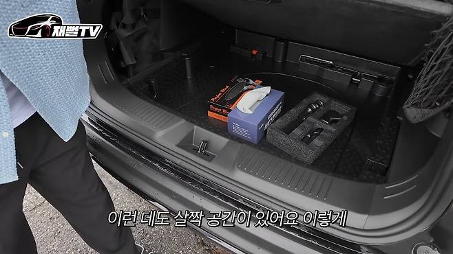 쉐보레 트랙스 크로스오버 RS 미드나잇 에디션의 트렁크 하단부를 열어보면 숨겨진 공간이 나타납니다. 차주분께서는 여기에 현금을 숨겨 놓을 수도 있겠다는 농담을 건네기도 하셨는데요, 실제로 하단 트레이는 차주분께서 따로 설치하신 것이라고 합니다. 이러한 수납공간은 실용성을 더해주는 좋은 요소라고 생각합니다.