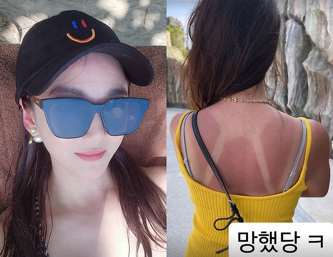 전날 무슨 옷을 입었는지 확연하게 드러날 정도로 짙은 화상 자국에 자신도 웃겼는지 "망했당ㅋ"라는 멘트로 보는 이들에게 웃음을 선사했습니다.